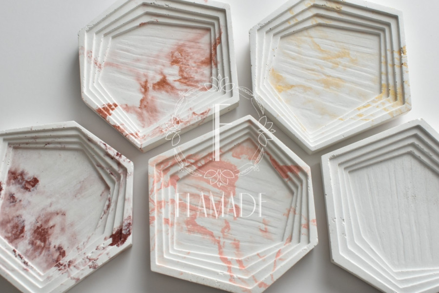 Fabricadas a mano en cemento con efecto mármol en diferentes colores y brillos (Rosa, Dorado, Cobre, Chocolate o Terracota)
