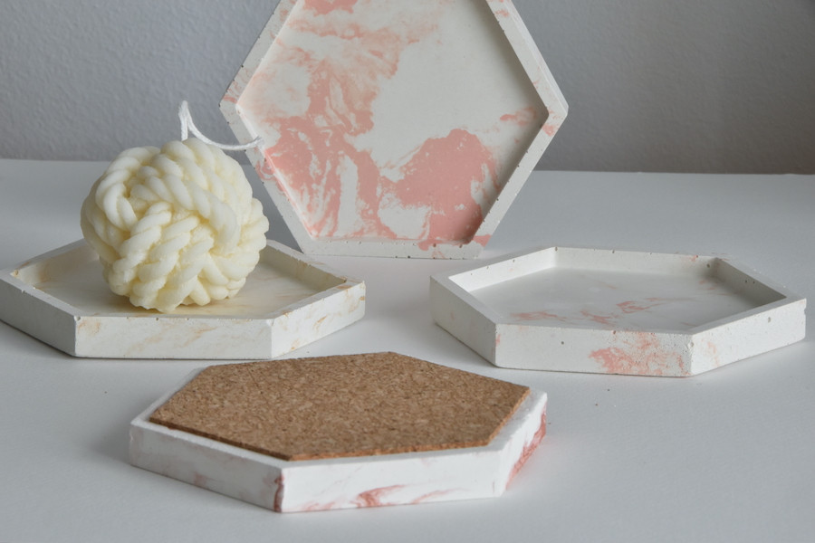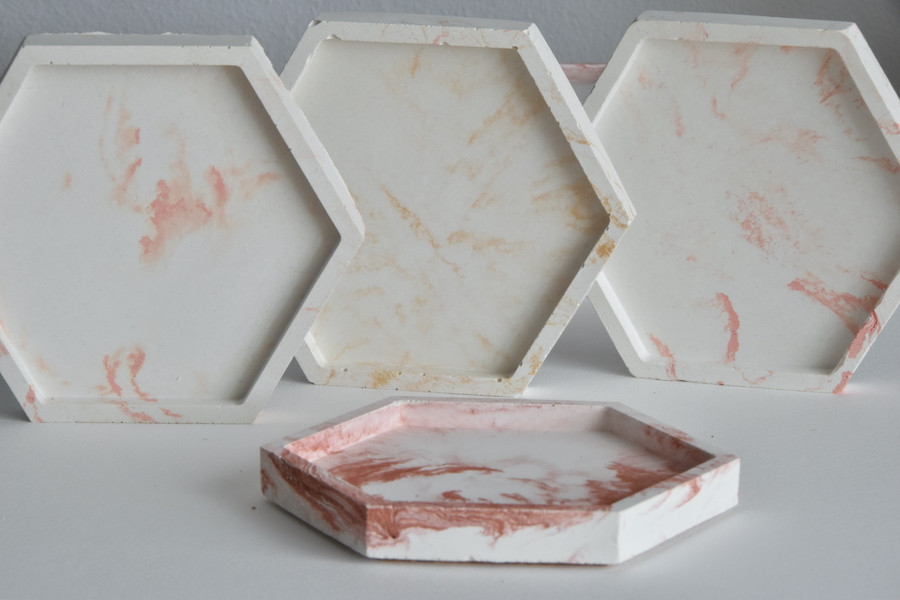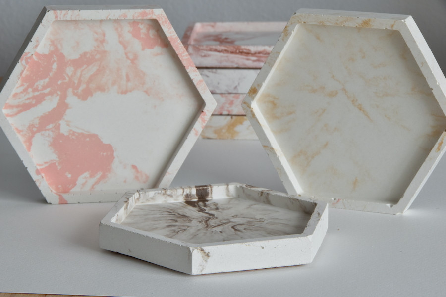 Fabricadas a mano en cemento con efecto mármol en diferentes colores y brillos (Rosa, Dorado, Cobre, Chocolate o Terracota)