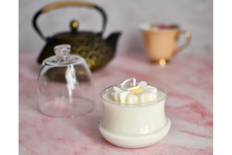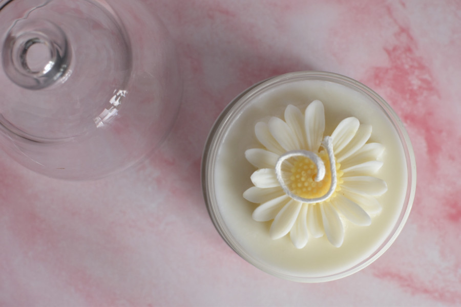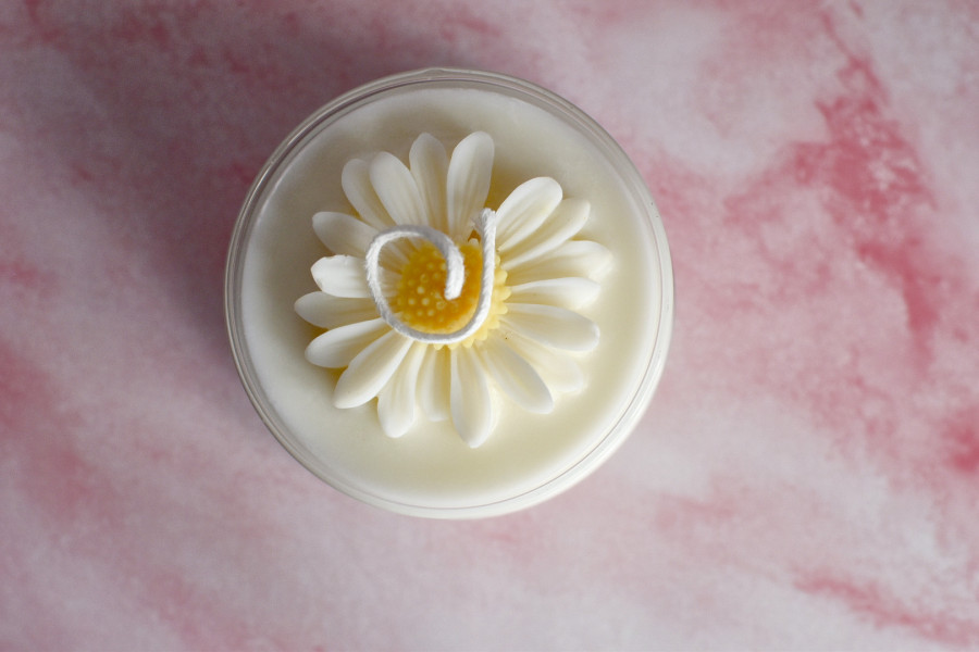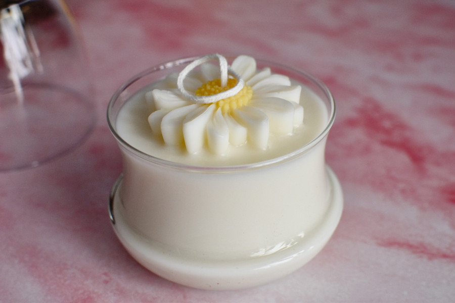 200 Gramos de Cera vegetal de Soja decorada con una flor Margarita hecha con cera.