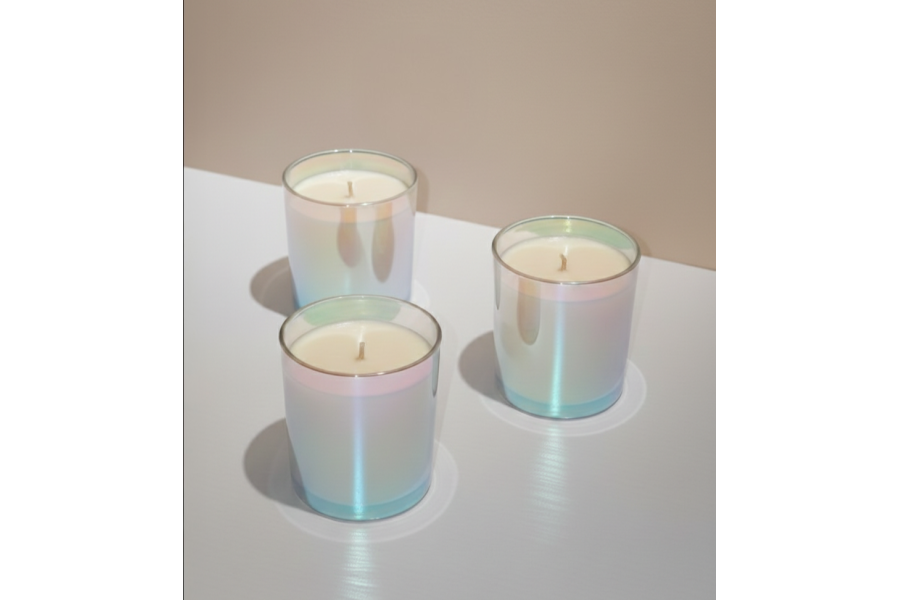 Vela Boreal en envase de vidrio iridiscente que cambia de colores.