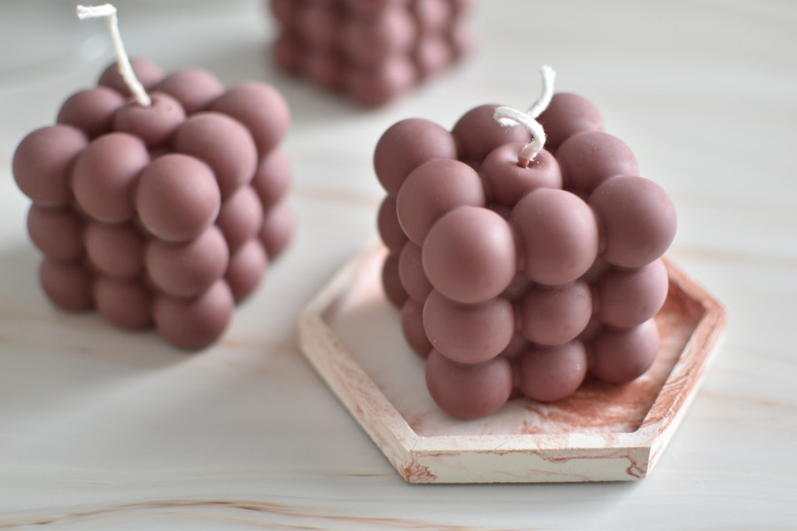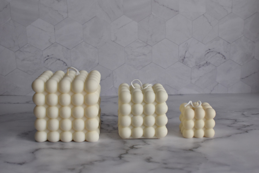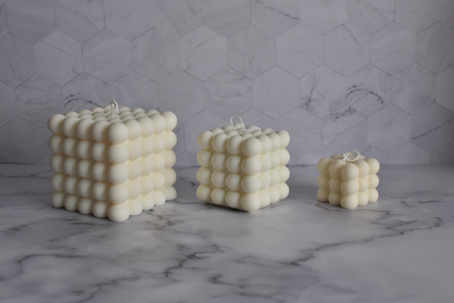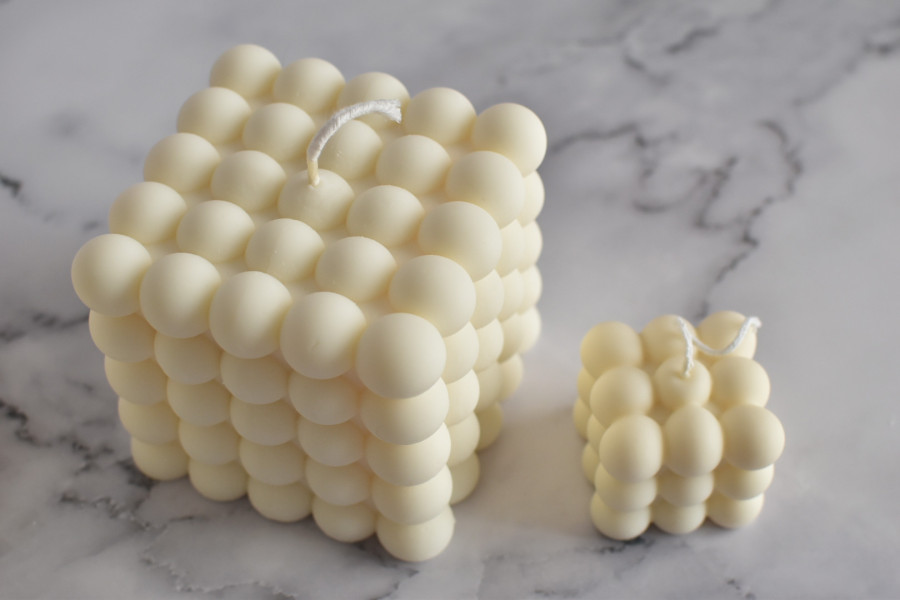 El tamaño de la vela pequeña es de 6cm de alto, 6cm de ancho y 160 gramos aproximados.